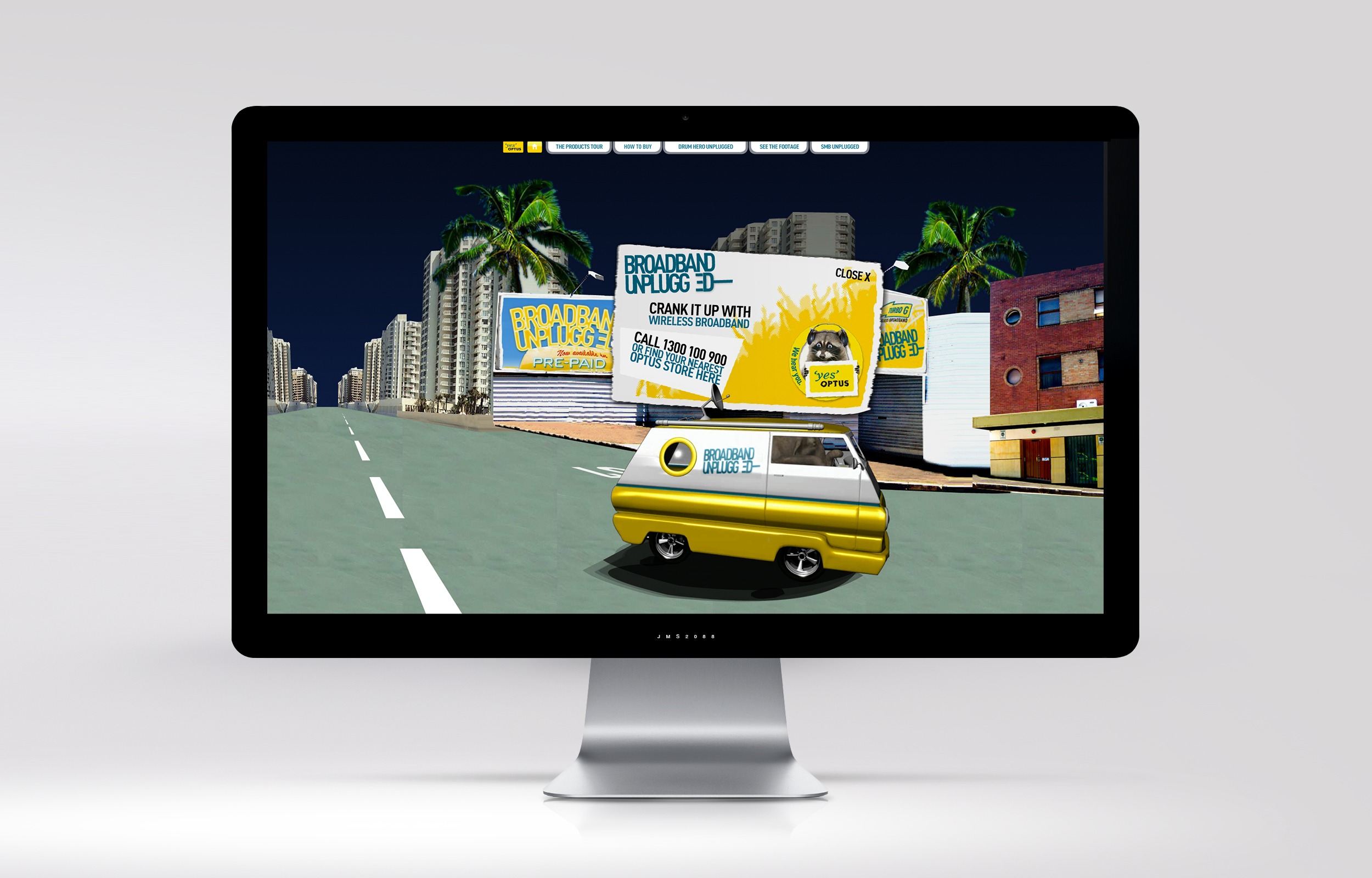 OPTUS – Social Engagement, online gaming, and data collection liked with above the line campaign, TVC, Broadband unplugged campaign microsite, a flash game with scoreboard- competition lasting 6-8 months. Collecting subscribers, and the winners with the latest deals, new phones, new unplugged broadband packages.